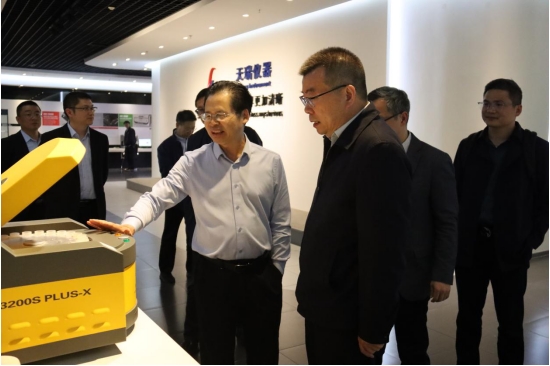 孫真榮院長(zhǎng)一行在天瑞儀器董事長(zhǎng)劉召貴博士的帶領(lǐng)下,參觀了天瑞儀器多功能展廳,深入了解了天瑞的相關(guān)產(chǎn)品與技術(shù)。