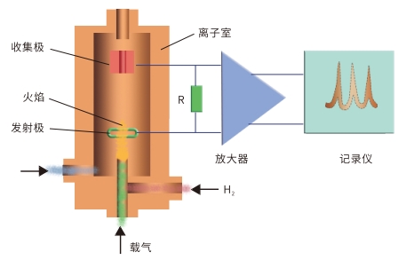 氫火焰離子化檢測器(FID),它是典型的破壞性、質(zhì)量型檢測器、是以氫氣和空氣燃燒生成的火焰為能源,當(dāng)有機(jī)化合物進(jìn)入以氫氣和氧氣燃燒的火焰,在高溫下產(chǎn)生化學(xué)電離,電離產(chǎn)生比基流高幾個數(shù)量級的離子,在高壓電場的定向作用下,形成離子流,微弱的離子流經(jīng)過高阻放大,成為與進(jìn)入火焰的有機(jī)化合物量成正比的電信號,因此可以根據(jù)信號的大小對有機(jī)物進(jìn)行定量分析。