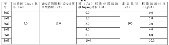 使用砷(As)標(biāo)準(zhǔn)使用溶液(0.1ug/ml),優(yōu)級純鹽酸(HCL) ,分析純硫脲和抗壞血酸,去離子水(電阻率≥10M 歐姆)等試劑。