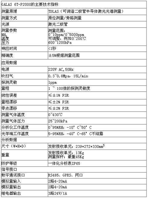激光在線氣體分析儀(氨氣)GALAS 6T-P2000選取以基于可調(diào)諧二極管(TDLAS)激光吸收光譜技術(shù)的激光在線氣體分析儀采用原位探桿式激光分析法,測量氨逃逸量。