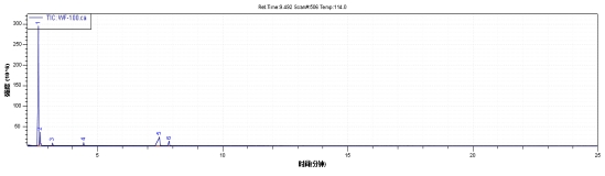 將樣品用乙酸乙酯稀釋合適倍數(shù)后,準(zhǔn)確吸取1μl溶液進(jìn)行測(cè)試,譜圖和檢測(cè)結(jié)果如下
