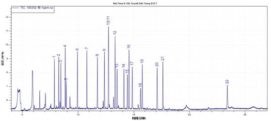 測(cè)定方式:TICFULL SCAN)定性(掃描范圍:45-450amu),SIM模式定量。